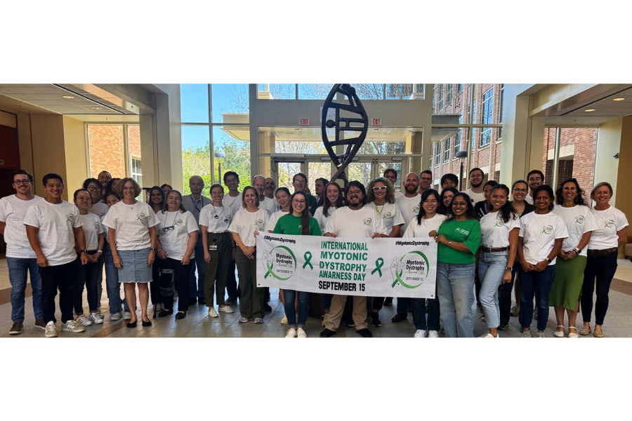 - The University of Florida's NeuroGenetics Student Organization wore International DM Awareness Day shirts to the lab and welcomed a guest speaker living with myotonic dystrophy.
