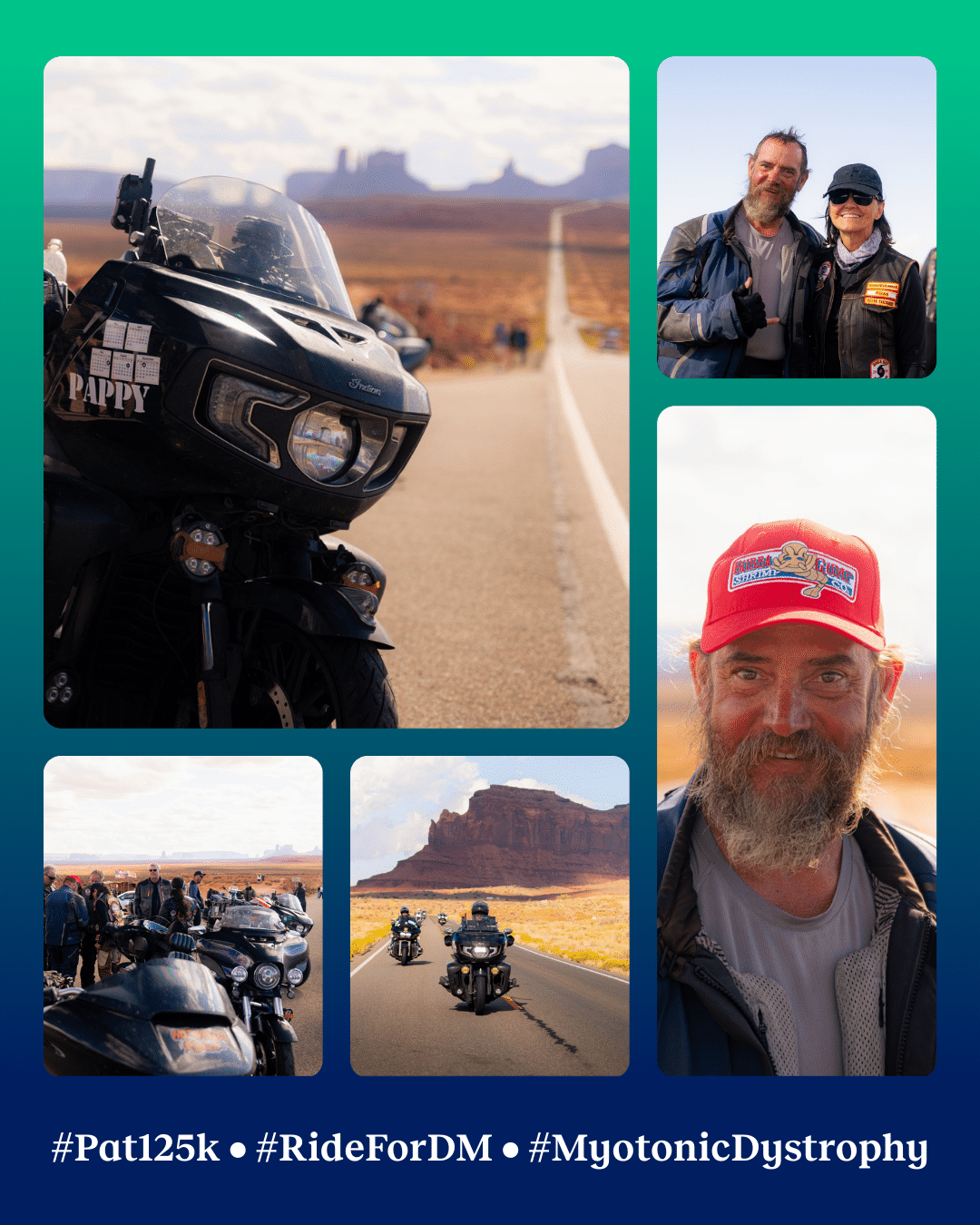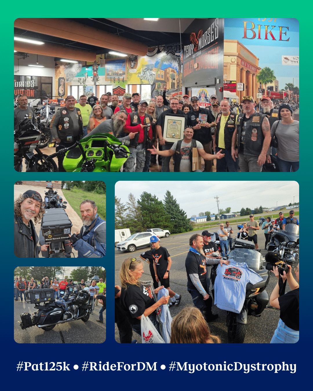 Pat, a 60-year-old Navy veteran, 9/11 first responder, and retired firefighter, set out not just to break records but to raise national awareness of myotonic dystrophy, a devastating inherited disorder that affects more than 150,000 Americans. His ride became a rallying point for the DM community and a powerful symbol of grit, endurance, and love.